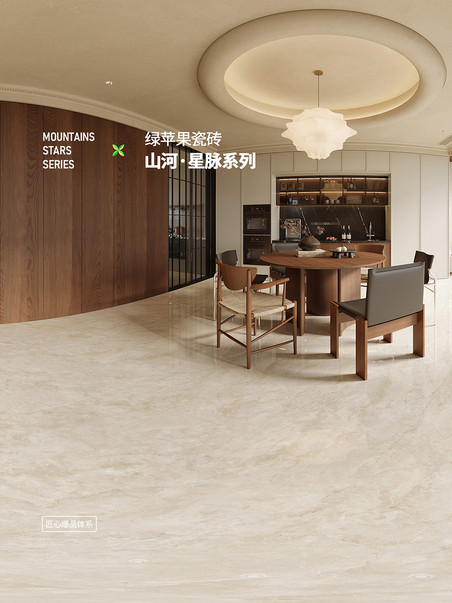 新生代品牌瓷磚綠蘋果瓷磚GREEN APPLE 始于2010年,糅合潮流元素與多變格調,優選品質好物,用顛覆創新的思維去組合夢想空間,打造時尚、激情、富有情感互動的理想家,其中張揚著年輕、奮斗和快樂的DNA。產品集合國際潮流色彩,以“給每個年輕人一個夢想的家”為品牌使命,傳遞正青春的簡單理念和細膩入微的質感精神。